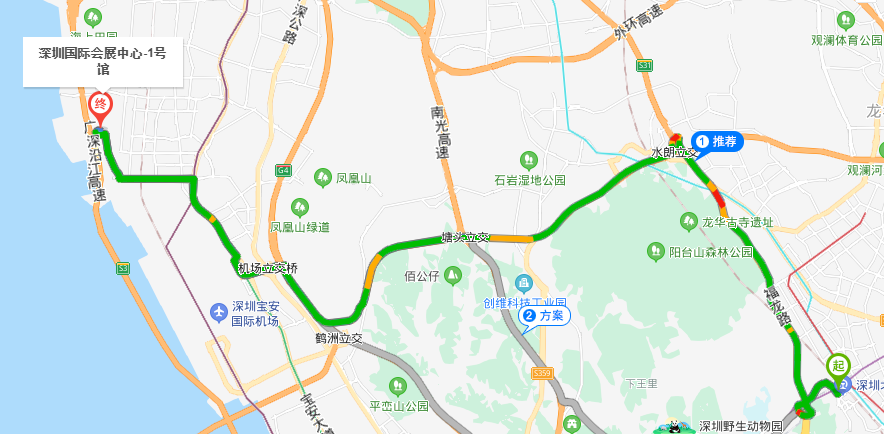 離深圳北站 47 公里,途經(jīng)福龍路、沈海高速,出租車用時(shí) 53 MIN。